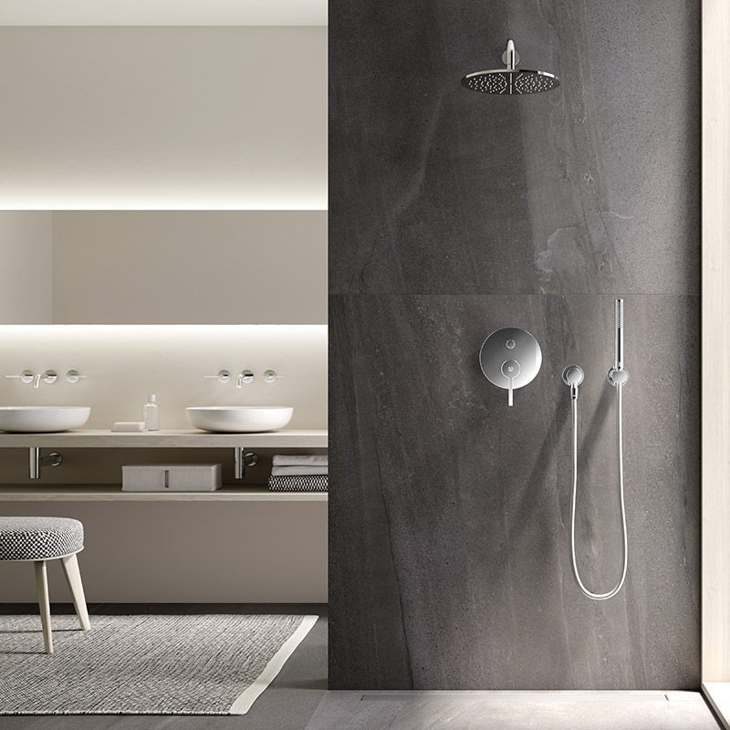 - Duschstab in geschützter Ruheposition verborgen – Schmutzwasserkontakt wird somit stets vermieden
